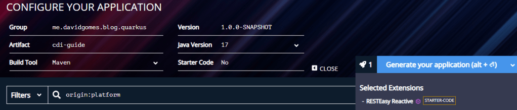 Head over to https://code.quarkus.io, to set up the project.